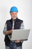 pracownik budowlany przy użyciu komputera przenośnego
