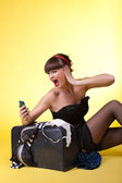 Zdjęcie "Szał pin-up girl Wyświetlono rock gest" może być wykorzystywane do celów osobistych i komercyjnych zgodnie z warunkami zakupionej licencji Royalty-free. Obraz jest dostępny do pobrania w jakości wysokiej rozdzielczości do 5760x3840.