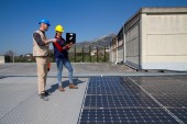 inżynierowie sprawdzanie instalacji paneli słonecznych