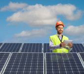 Zdjęcie "biznesmen sprawdzanie instalacji fotowoltaicznych" może być wykorzystywane do celów osobistych i komercyjnych zgodnie z warunkami zakupionej licencji Royalty-free. Obraz jest dostępny do pobrania w jakości wysokiej rozdzielczości do 5760x3840.