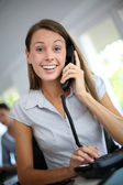 Zdjęcie "młoda kobieta w biurze rozmawia przez telefon" może być wykorzystywane do celów osobistych i komercyjnych zgodnie z warunkami zakupionej licencji Royalty-free. Obraz jest dostępny do pobrania w jakości wysokiej rozdzielczości do 5760x3840.