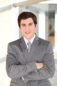portret uśmiechający się biznesmen z rękami skrzyżowanymi