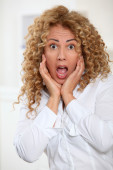 dziewczyna przyjaciółmi oglądania straszny film w telewizji