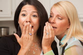 dziewczyna przyjaciółmi oglądania straszny film w telewizji