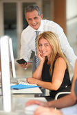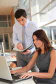 wykonawczy kobieta pracuje na karcie elektronicznej