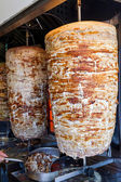 Ogromny szczyt mięsa dla Taco al Pastor gotowy do cięcia przez tradycyjne meksykańskie taquero w Mexico City, część kultury i pyszne dania kuchni ulicznej z gorącym sosem