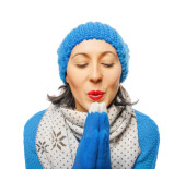 kobieta ubrana w zimowy kapelusz i rękawice
