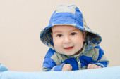 śliczny chłopczyk odkryty w ciepłe zimowe ubrania.