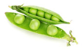 Idealny zielony groszek w strąku odizolowany na białym tle.
