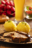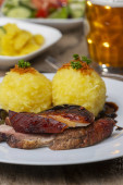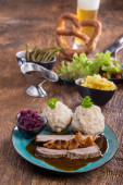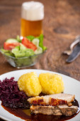 Zdjęcie "pieczona wieprzowina bawarska z pierogami" może być wykorzystywane do celów osobistych i komercyjnych zgodnie z warunkami zakupionej licencji Royalty-free. Obraz jest dostępny do pobrania w jakości wysokiej rozdzielczości do 5760x3840.