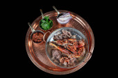 Zdjęcie "Kuchnia turecka zmieszana kebab. Shish kebab, shaverma, grillowany kurczak. Dania kuchni orientalnej, leżące na chlebie pita i ozdobione zielenią i warzywami, sosami i frytkami." może być wykorzystywane do celów osobistych i komercyjnych zgodnie z warunkami zakupionej licencji Royalty-free. Obraz jest dostępny do pobrania w jakości wysokiej rozdzielczości do 5760x3840.