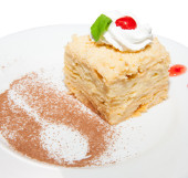 Zdjęcie "Krem kokosowy tort na białe płytki z odrobiną bitej śmietany" może być wykorzystywane do celów osobistych i komercyjnych zgodnie z warunkami zakupionej licencji Royalty-free. Obraz jest dostępny do pobrania w jakości wysokiej rozdzielczości do 5760x3840.