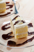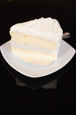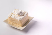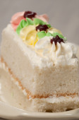Krem kokosowy tort na białe płytki z odrobiną bitej śmietany