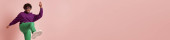 Afroamerykanka w turkusowej bluzce i spodniach odizolowanych na różowo, sztandar