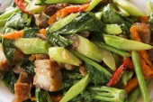 Talerz pysznych i pikantnych dań Hunan, smażona wieprzowina z chili