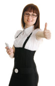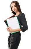 młoda kobieta w businesssuit, wskazując na tablicy