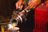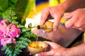 Kobieta zapala świecę olejową w Lak Mueang, Bangkok, Tajlandia