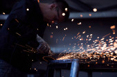 Zdjęcie "Ciężka Inżynieria Przemysłu Wnętrze fabryki z robotnikiem przemysłowym za pomocą szlifierki kątowej i cięcia rur metalowych. Wykonawca w zakresie bezpieczeństwa Jednolite i twarde Kapelusze Produkcja konstrukcji metalowych. Wysokiej jakości" może być wykorzystywane do celów osobistych i komercyjnych zgodnie z warunkami zakupionej licencji Royalty-free. Obraz jest dostępny do pobrania w jakości wysokiej rozdzielczości do 5760x3840.
