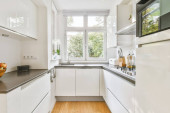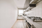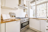 Zdjęcie "Biała kuchnia ze srebrno-szarą kuchenką i dużymi oknami" może być wykorzystywane do celów osobistych i komercyjnych zgodnie z warunkami zakupionej licencji Royalty-free. Obraz jest dostępny do pobrania w jakości wysokiej rozdzielczości do 5760x3840.