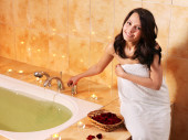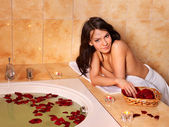kobieta wziąć kąpiel bąbelkowa.