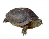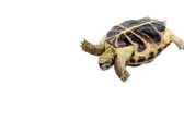 Żółw na białym tle na białym tle testudo hermanni,