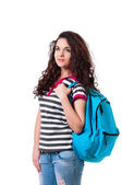 Zdjęcie "młoda kobieta z tornister" może być wykorzystywane do celów osobistych i komercyjnych zgodnie z warunkami zakupionej licencji Royalty-free. Obraz jest dostępny do pobrania w jakości wysokiej rozdzielczości do 5760x3840.