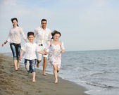 szczęśliwa młoda rodzina baw się dobrze na plaży