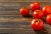 Zdjęcie "Świeże czerwone pomidory na brązowym tle tekstury. Pomidory wiśniowe z zielonymi łodygami. świeże warzywa. Skopiuj space.organic żywności" może być wykorzystywane do celów osobistych i komercyjnych zgodnie z warunkami zakupionej licencji Royalty-free. Obraz jest dostępny do pobrania w jakości wysokiej rozdzielczości do 5760x3840.