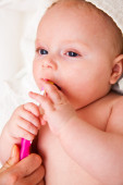 Młoda matka próbuje dać dziecko jest obojętne do swojego nowo narodzonego dziecka