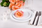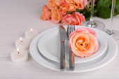 Zdjęcie "Tabela ustawienia z różą" może być wykorzystywane do celów osobistych i komercyjnych zgodnie z warunkami zakupionej licencji Royalty-free. Obraz jest dostępny do pobrania w jakości wysokiej rozdzielczości do 5760x3840.