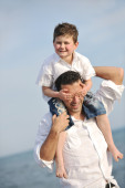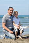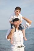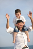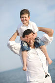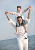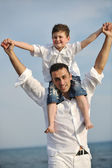 szczęśliwy ojciec i syn bawić i cieszyć się razem na plaży