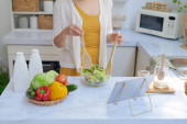 Zdjęcie "Młoda kobieta gotuje w kuchni" może być wykorzystywane do celów osobistych i komercyjnych zgodnie z warunkami zakupionej licencji Royalty-free. Obraz jest dostępny do pobrania w jakości wysokiej rozdzielczości do 5760x3840.