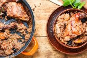 Cock au vin, francuskie danie z kurczaka duszone w winie