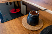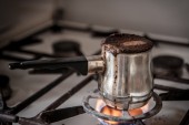 Kawa jest warzone i sprowadza na cezve na kuchenki gazowe