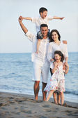 szczęśliwa młoda rodzina baw się dobrze na plaży