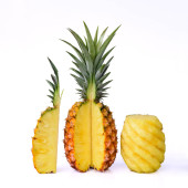 Świeże kawałki ananasa wyizolowane na białym. Zbliżenie letnie jedzenie i picie