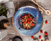 Miska świeżej sałatki awokado dla smakoszy na drewnianym tle