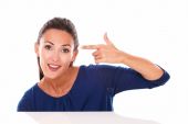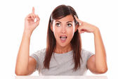 Zdjęcie "Zaskoczony kobieta skierowana w górę jej palec" może być wykorzystywane do celów osobistych i komercyjnych zgodnie z warunkami zakupionej licencji Royalty-free. Obraz jest dostępny do pobrania w jakości wysokiej rozdzielczości do 5760x3840.
