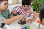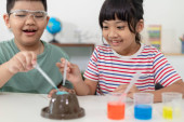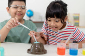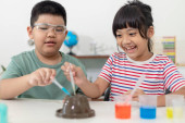 Zdjęcie "dzieci, powtarzając i obserwując laboratorium nauki w domu - projekt sody i octu wulkan" może być wykorzystywane do celów osobistych i komercyjnych zgodnie z warunkami zakupionej licencji Royalty-free. Obraz jest dostępny do pobrania w jakości wysokiej rozdzielczości do 5760x3840.