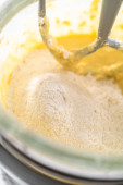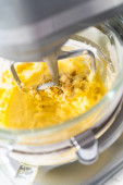 Składniki mieszające w kuchennym mikserze do pieczenia miękkich ciasteczek z orzechami owsianymi.