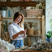 Zdjęcie "Szczęśliwa kobieta rzemieślnik produkcji ręcznie ceramiki świąteczne dekoracje siedząc przy stole w swoim studio" może być wykorzystywane do celów osobistych i komercyjnych zgodnie z warunkami zakupionej licencji Royalty-free. Obraz jest dostępny do pobrania w jakości wysokiej rozdzielczości do 5760x3840.