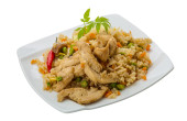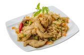Libański kurczaka i przyprawione ryżu z orzechami i pietruszka