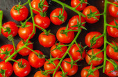 Zdjęcie "Widok z góry dojrzałych pomidorów wiśniowych na odizolowane na czarno gałęzie " może być wykorzystywane do celów osobistych i komercyjnych zgodnie z warunkami zakupionej licencji Royalty-free. Obraz jest dostępny do pobrania w jakości wysokiej rozdzielczości do 5760x3840.