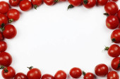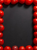 Widok z góry ramki z pomidorów wiśniowych na czarnym tle