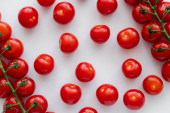 Widok z góry świeżych pomidorów wiśniowych na worek