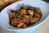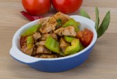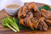 Tajskie ulubione jedzenie. Pikantna zupa z kurczaka (Tom Yum Gai Baan) w białej misce.