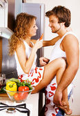Młoda para romantyczny w kuchni