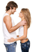 Młoda para romantyczny w kuchni