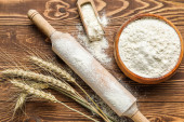 Zdjęcie "Uszy pszenicy, papierowa torba, miarka i miska z mąką na drewnianym tle, zbliżenie" może być wykorzystywane do celów osobistych i komercyjnych zgodnie z warunkami zakupionej licencji Royalty-free. Obraz jest dostępny do pobrania w jakości wysokiej rozdzielczości do 5760x3840.