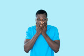 Zdjęcie "Zszokowany człowiek. Twarz Omg. Wow, portret. Niespodziewana niespodzianka. Zdumiony niemową facet w neonowym świetle zasłaniający usta niewiarygodnymi emocjami na ciemnym tle." może być wykorzystywane do celów osobistych i komercyjnych zgodnie z warunkami zakupionej licencji Royalty-free. Obraz jest dostępny do pobrania w jakości wysokiej rozdzielczości do 5760x3840.